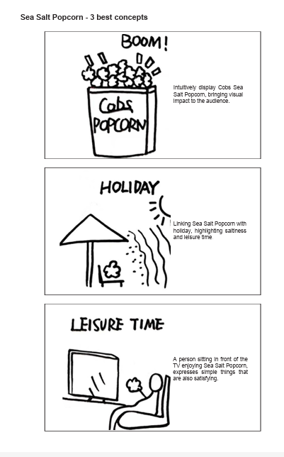 A magazine/newspaper ad targeting middle-aged consumers, linking the product’s fresh salty flavour to the feeling of a seaside vacation. The concept contrasts daily routines with relaxing holiday imagery to position “simple saltiness” as satisfying and rewarding.